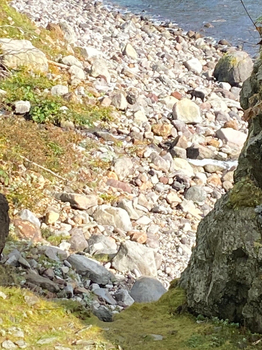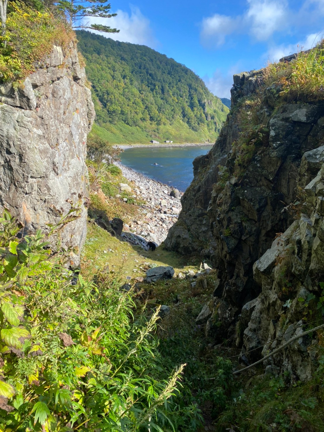 兄ちゃんが投げる石の音や、威嚇する大声だけが聞こえるんやけど、崖の向こうで姿が見えないので、クマスプレーを準備してすぐ降りました。