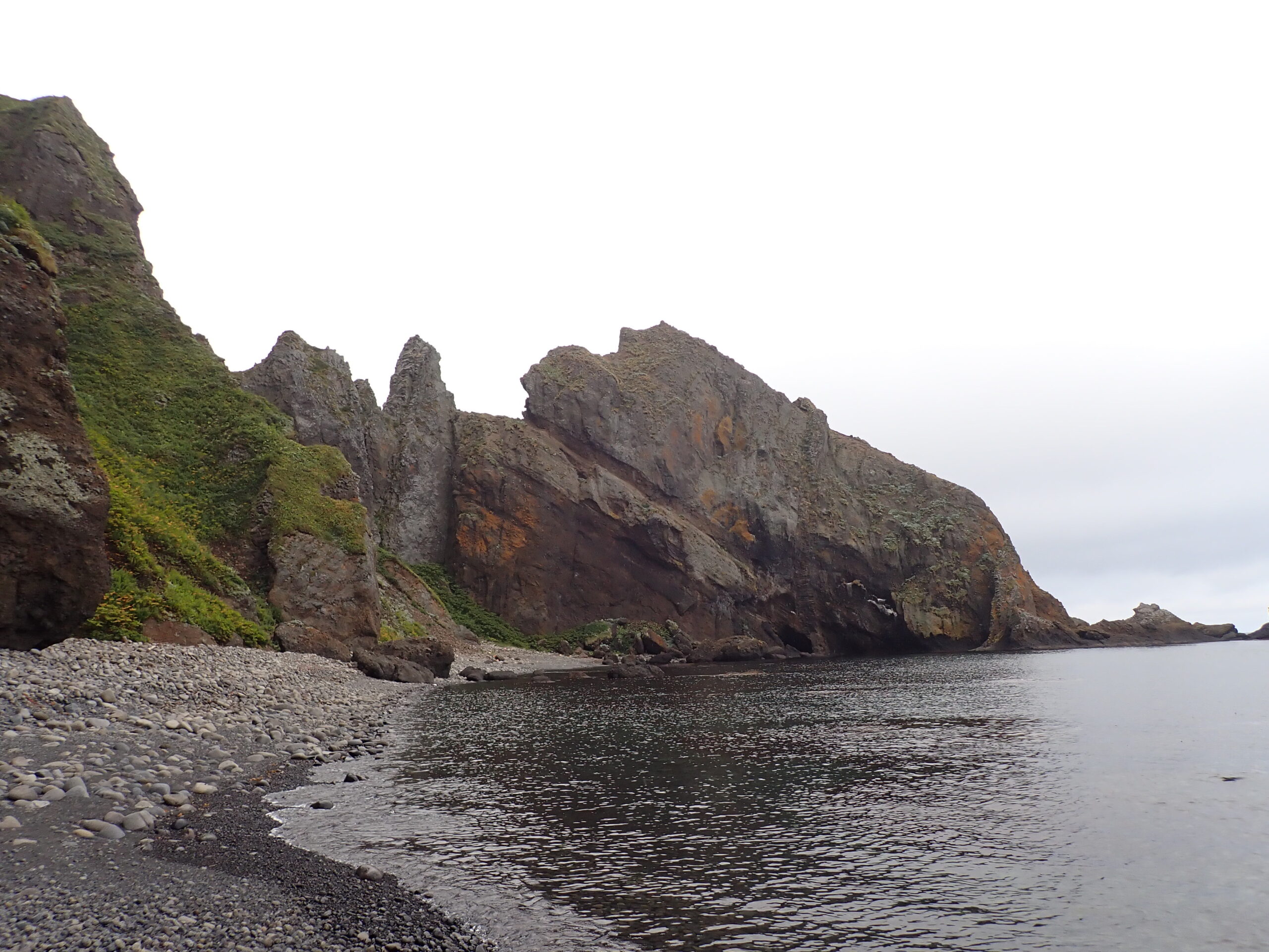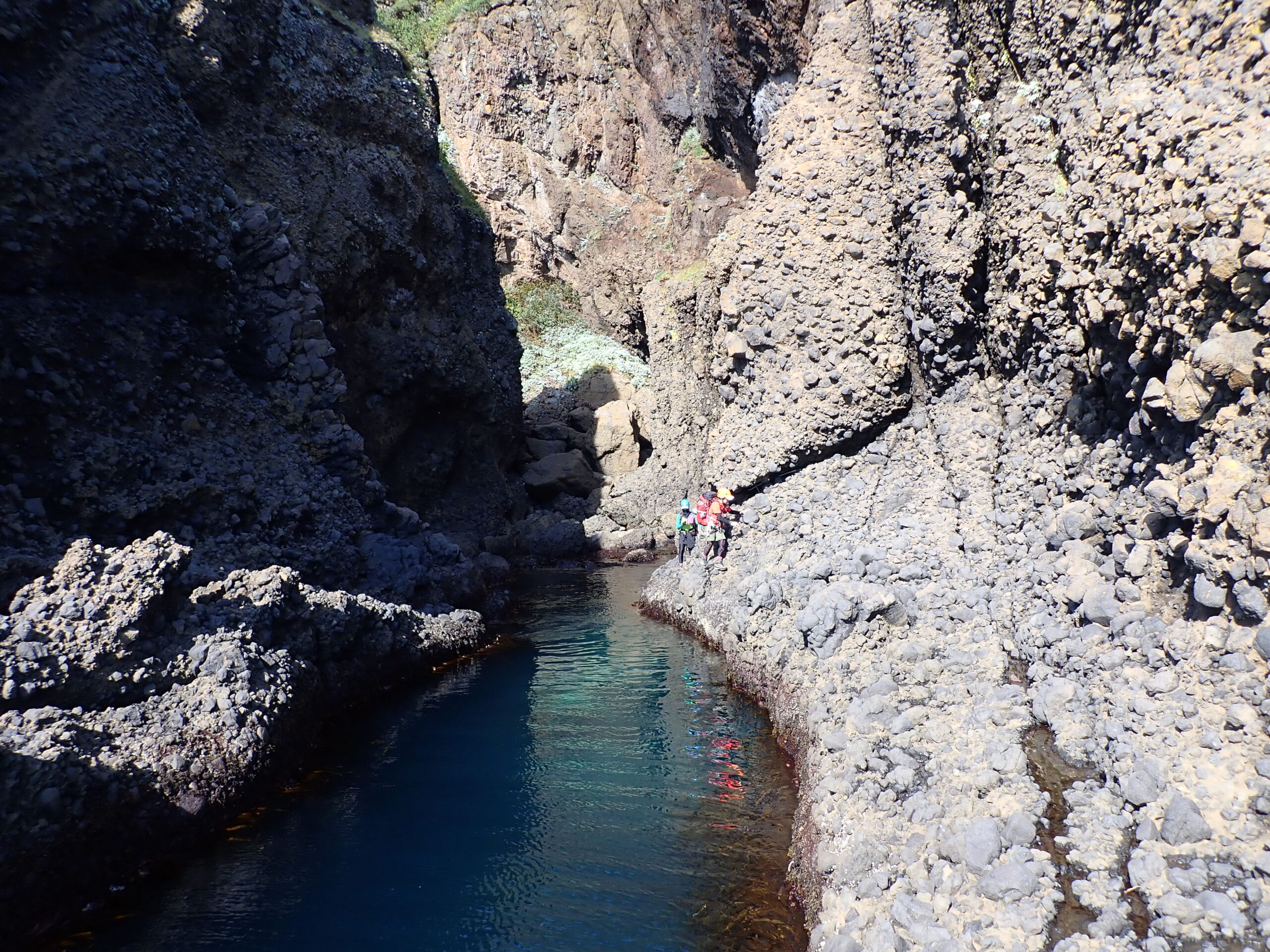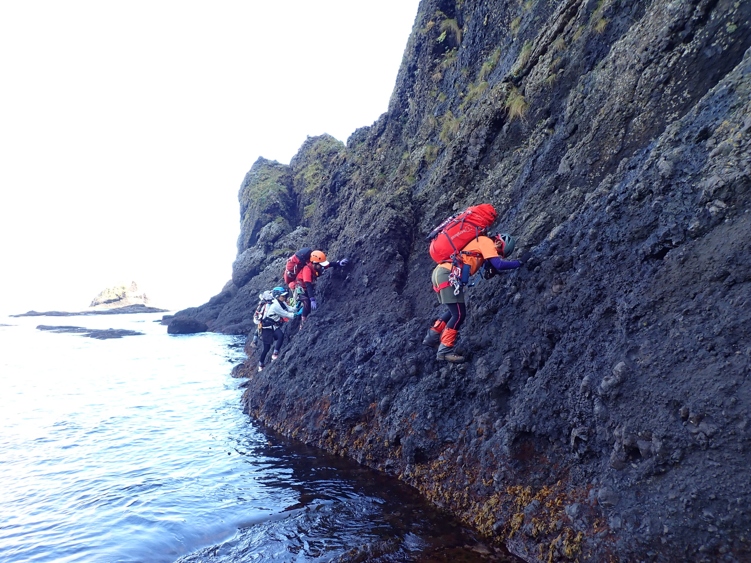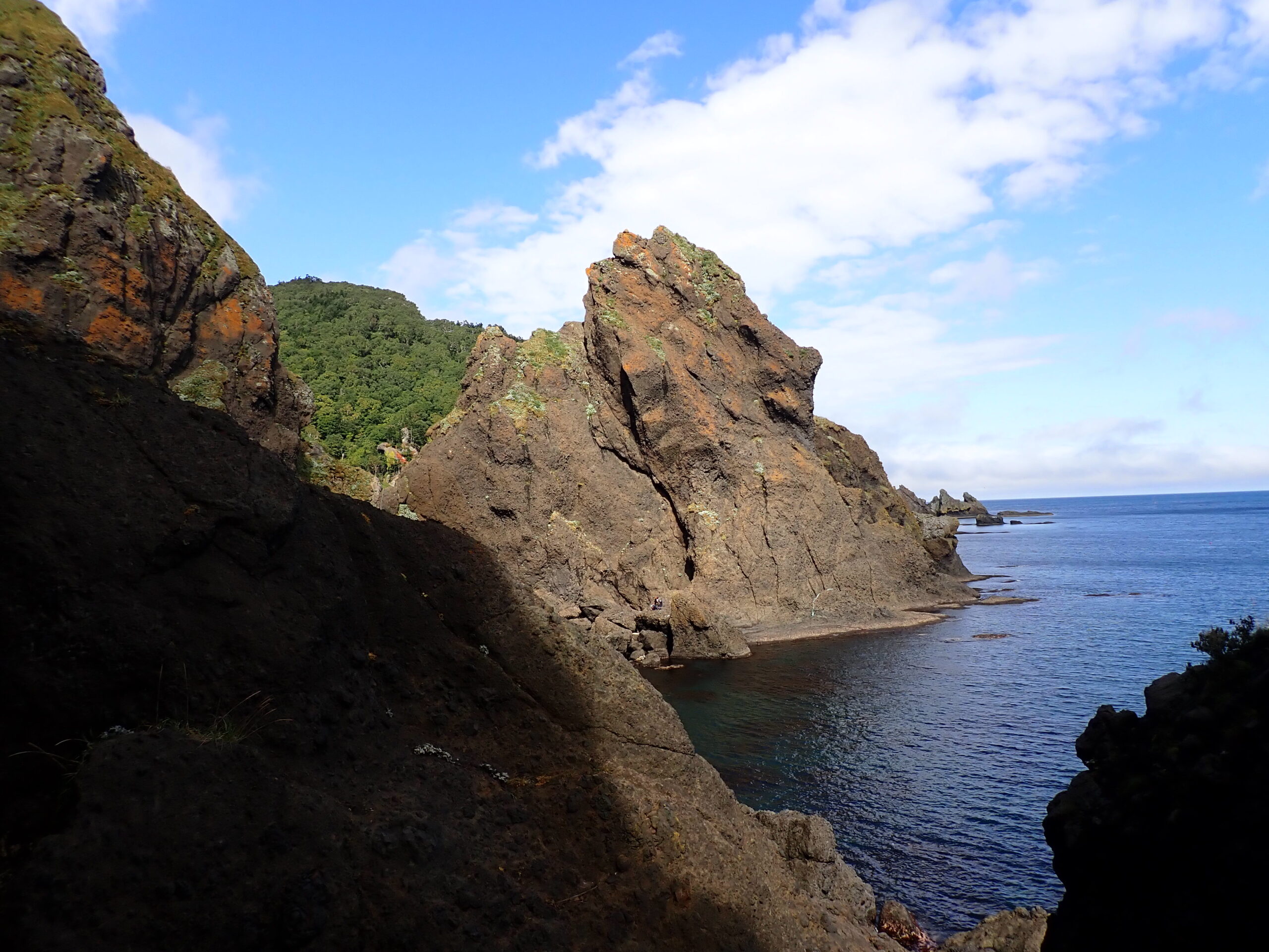 剣岩を越え、メガネ岩の洞窟で登山靴に履き替え、へつりを繰り返すと、ペキンノ鼻が見えてきます。