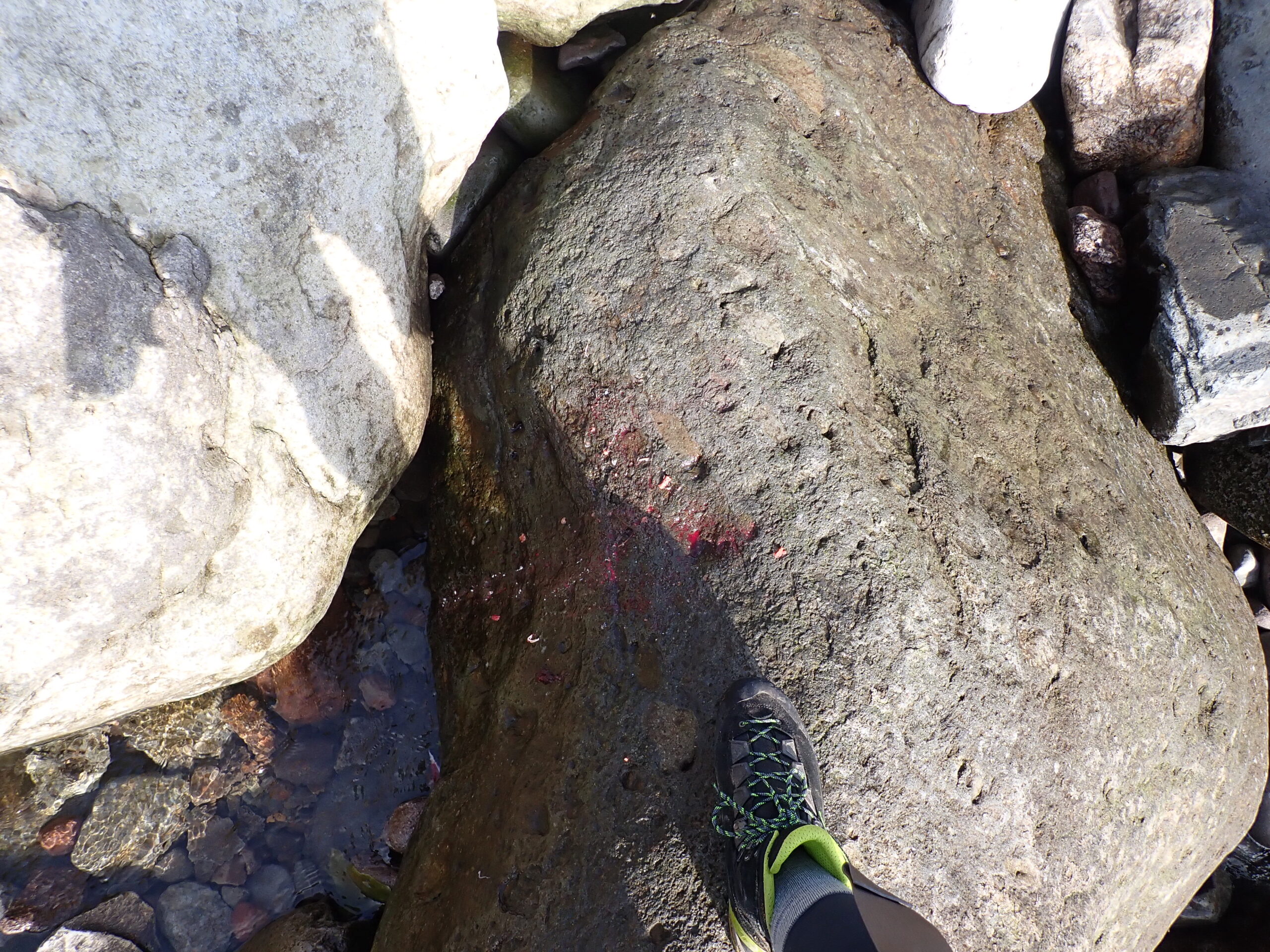 トッカリ瀬を干潮で通過し手際良く進んでくると、モイレウシから剣岩の先まで膝下の渡渉でクリアできます。