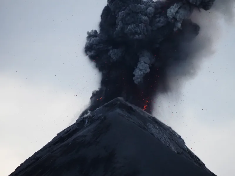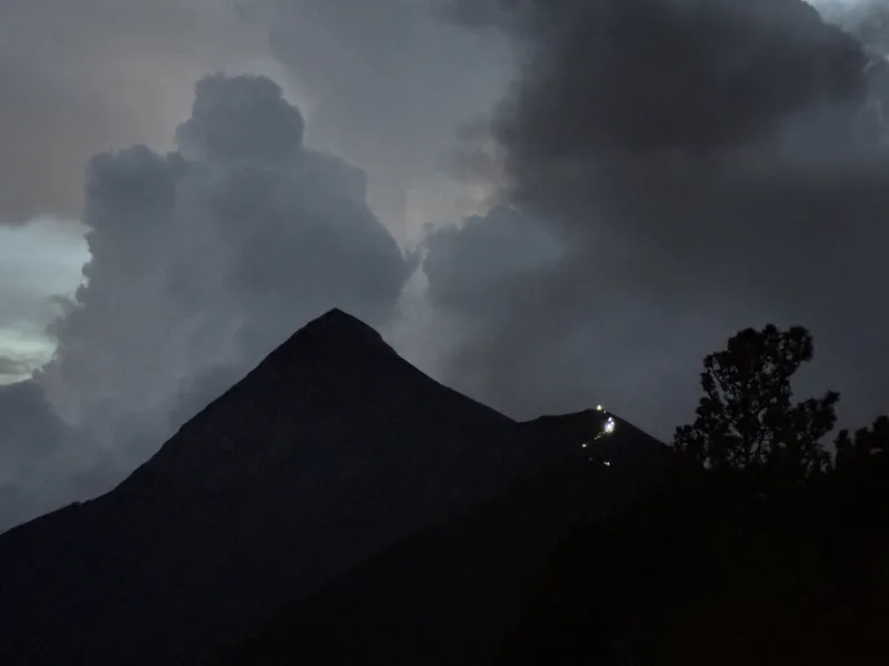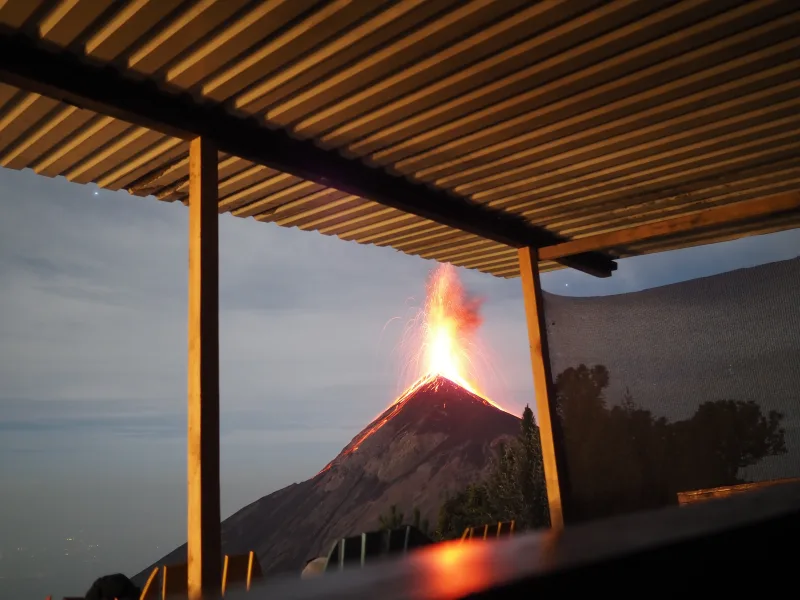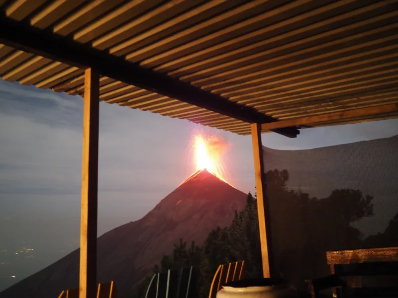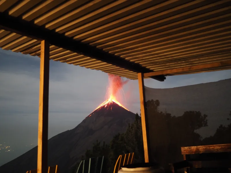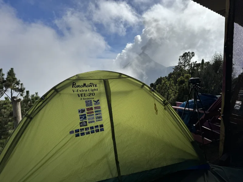往復の送迎、テントを張るスペースはフエゴ山の噴火が見られる目の前、入域料100ケツァル(約2,000円)が含まれる。