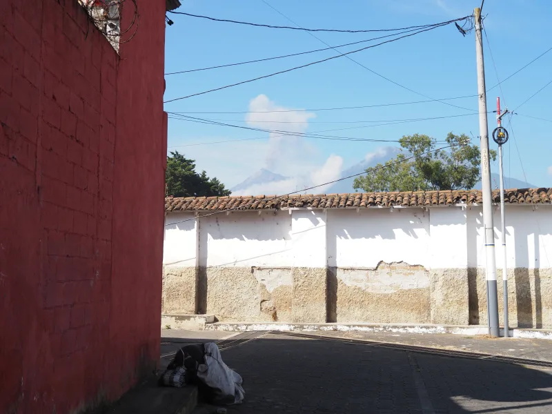途中でフエゴ山が見えて噴煙が上がっていたので写真を撮っていたら、ホームレスが話しかけてきた。