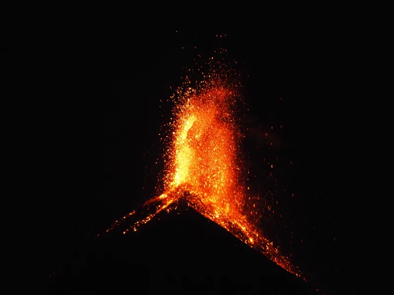 オレンジ色の溶岩が空高くに噴き上がるから大迫力。