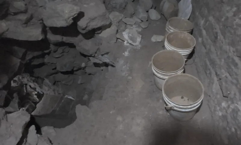 進んでいくと話し声が聞こえる。こっそり覗くと発掘していた(笑)