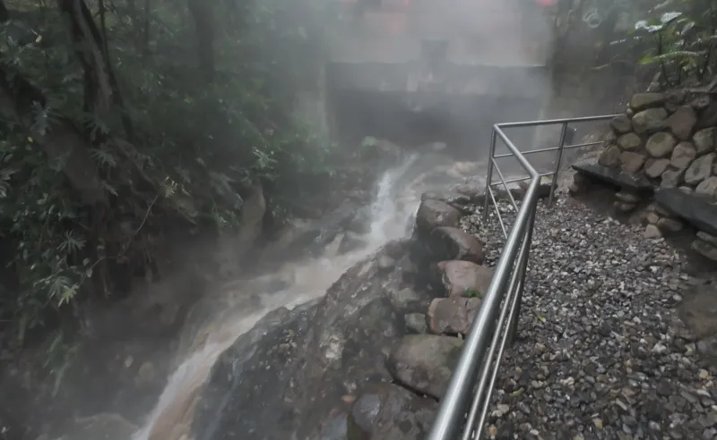 適当に回ってみると温泉の上部に源泉らしき所があって、看板には90℃って書いてあった。