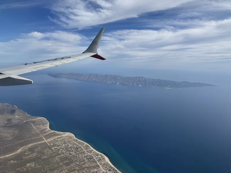 離陸して即寝で目が覚めたらメキシコ本土が終わろうとしていた。